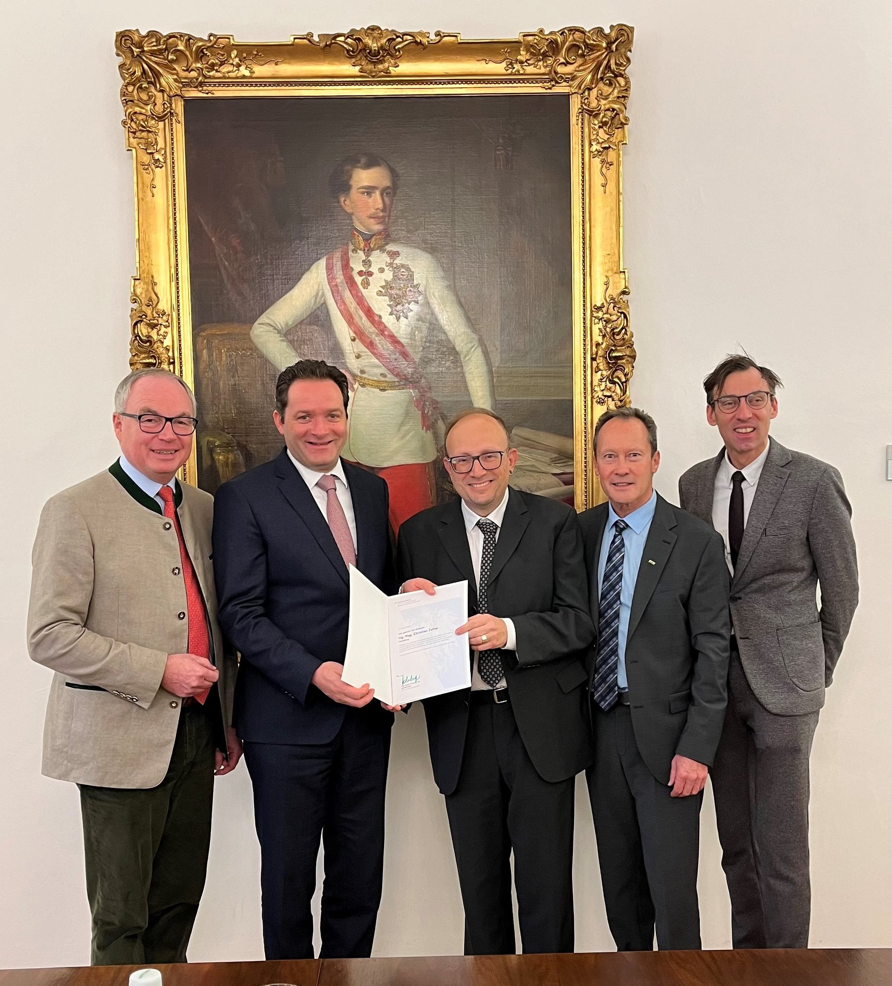 Der Umstand, dass an diesem Tag Bundesminister Norbert Totschnig mit seiner RegionIMpuls Tour am FJ Station machte, bescherte dem neuen Abteilungsvorstand eine persönliche Übergabe des Dekrets durch den Minister. Mit dabei auch Landeshauptmann-Stv. Stephan Pernkopf (Obmann-Stv. des Absolventenverbandes FJ), der Abteilungsleiter für das landwirtschaftliche Bildungswesen im Landwirtschaftsministerium, Christian Kasper, und FJ-Direktor Alois Rosenberger.